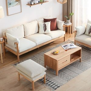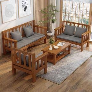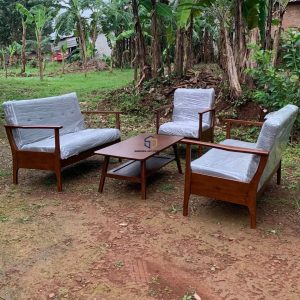 Terbuat dari kayu jati solid berkualitas tinggi, set sofa ini menghadirkan kombinasi keindahan alami kayu dengan desain minimalis yang elegan. Dilengkapi meja tamu senada, cocok untuk bersantai bersama keluarga, menerima tamu, atau sekadar menikmati waktu luang.